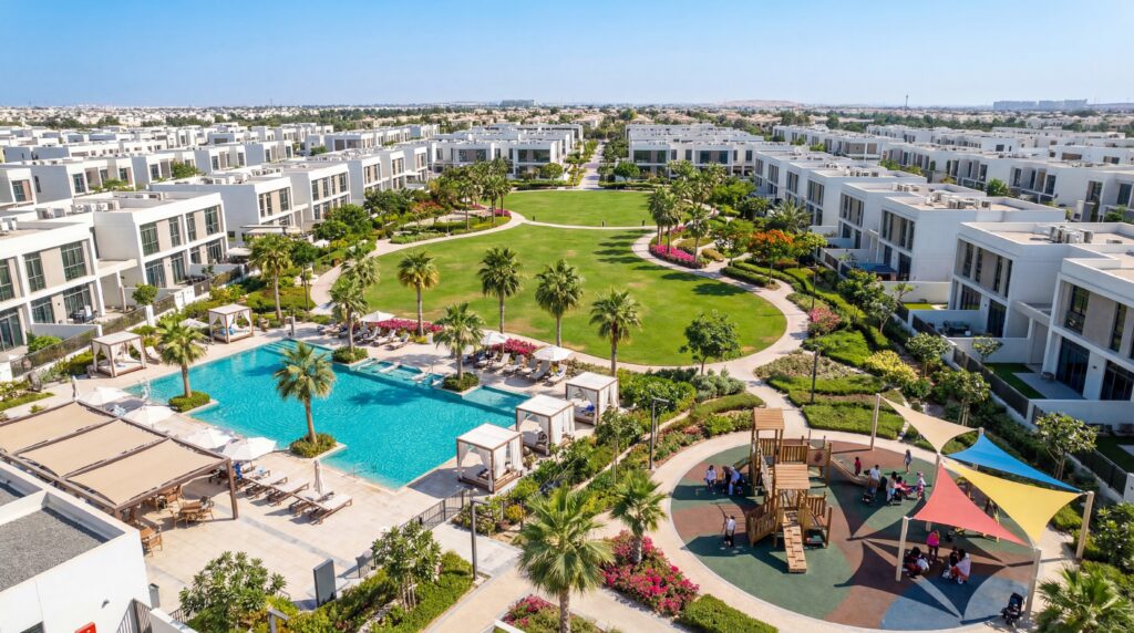 - Dubai Hills Estate – Modern, master-planned community with parks, schools, golf course, and mall.